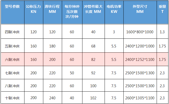六聯沖床基本參數: